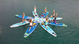 SUP Yoga stärkt deine Muskulatur, verbessert die Beweglichkeit und trainiert dein Gleichgewicht bei jeder Übung (Asana).